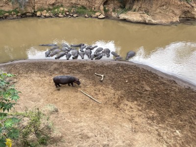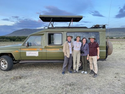 After our mission, we spent 4 days and 3 nights at the Sweetwaters tented camp which is on the equator. We had morning and evening wild animal safaris every day. Then we flew from a grass air strip in an Air Kenya propeller jet to the Maasai Mara and spent 3 days and 3 nights there. Once again, there were morning and afternoon safaris to experience.